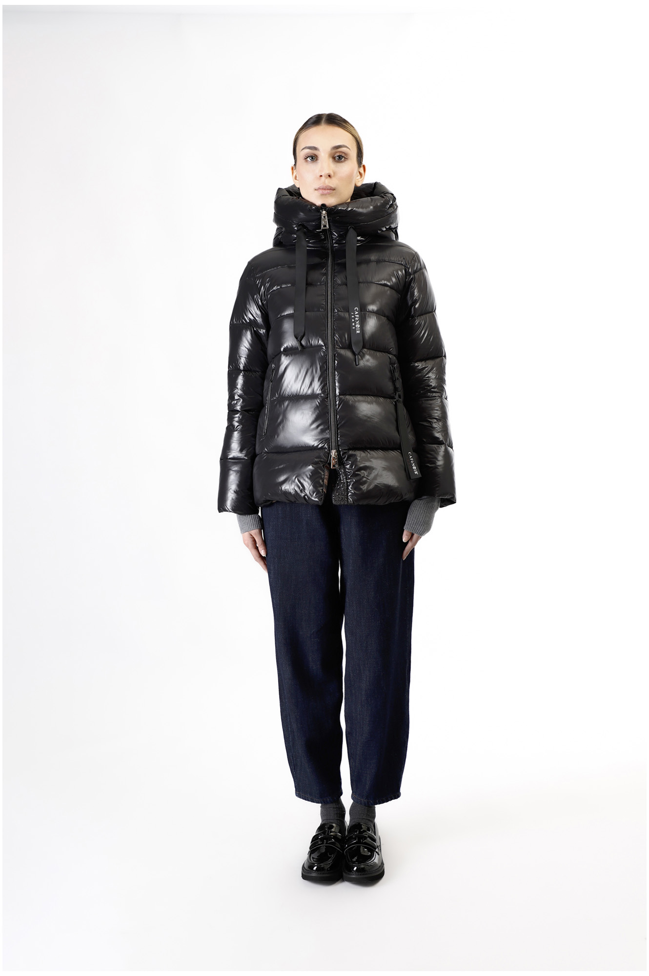 doudoune brillante avec doublure imprimée black
