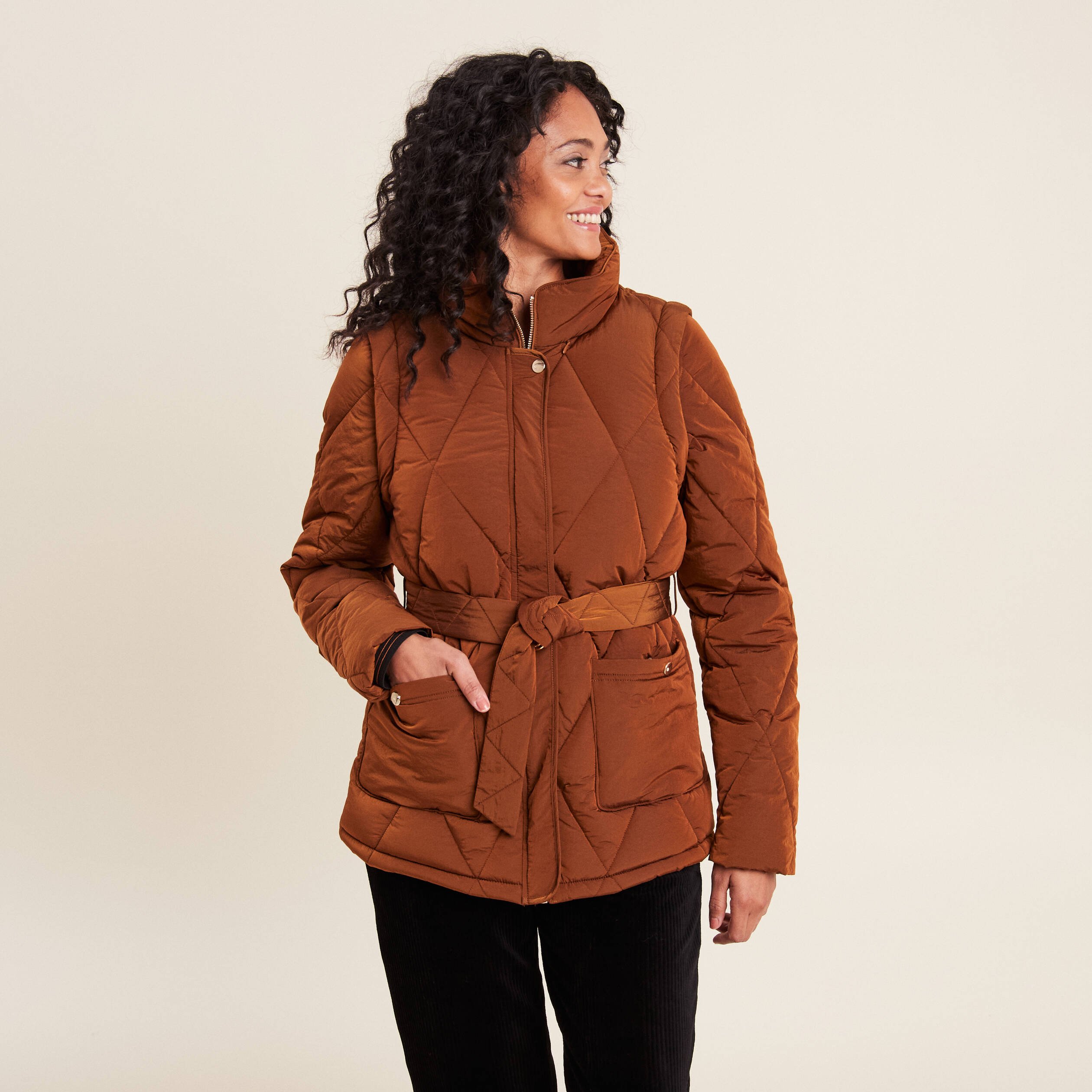 Doudoune déperlante cintrée ceinturée marron femme | Vibs