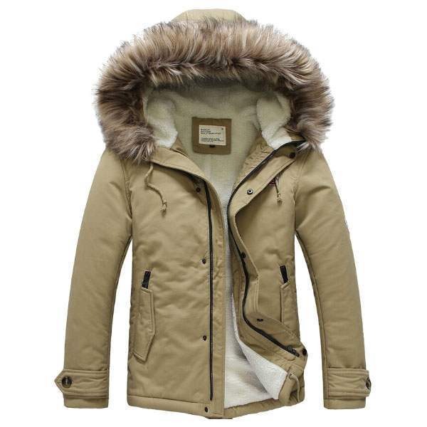 Doudoune Homme Parka Capuche fourrure Classique Chic Luxury Beige
