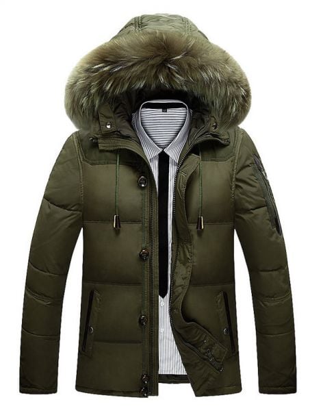 Doudoune mi longue homme avec capuche fourrure zip manche