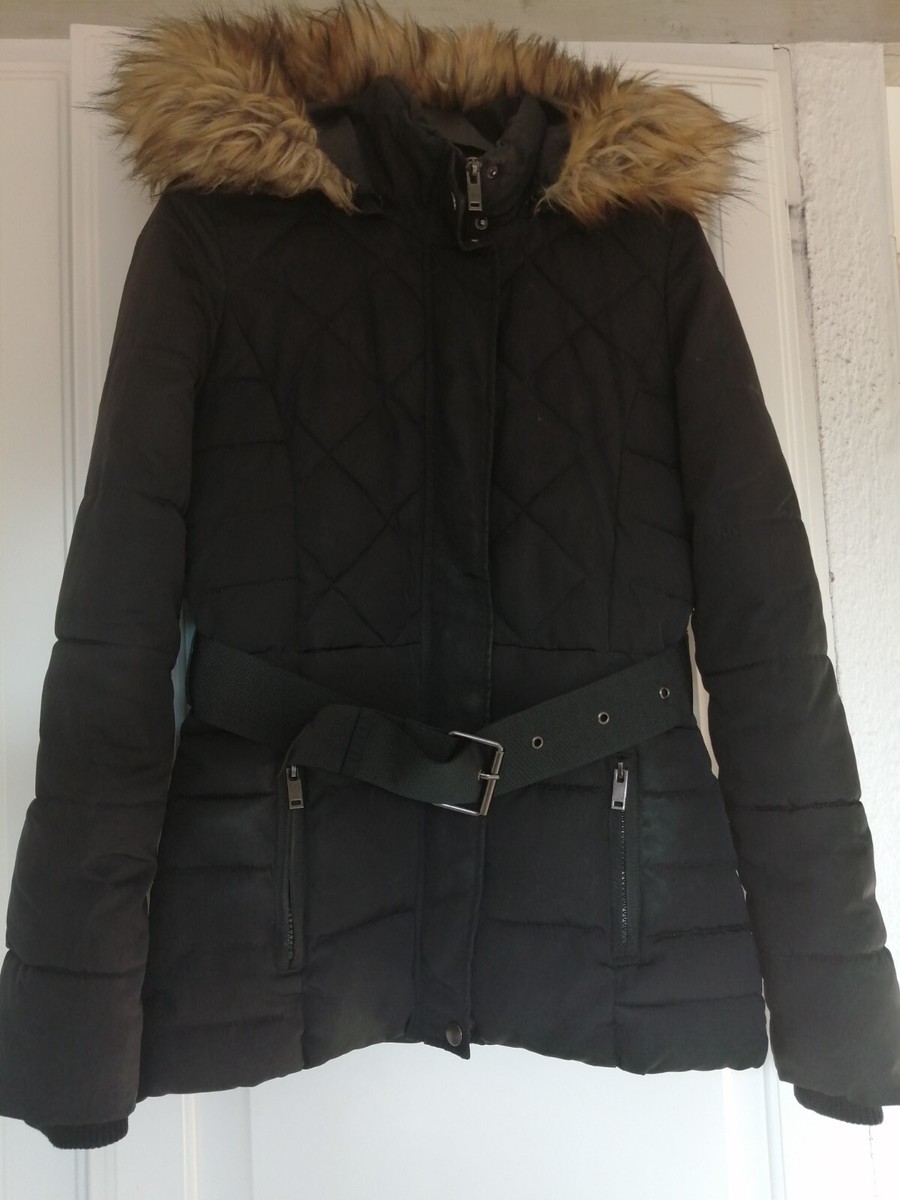 Doudoune noir Jennyfer taille 34 avec capuche et ceinture amovible | eBay
