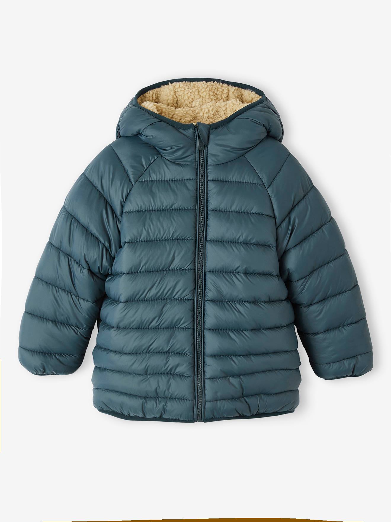 Doudoune à capuche réversible garçon matelassée et sherpa vert sapin