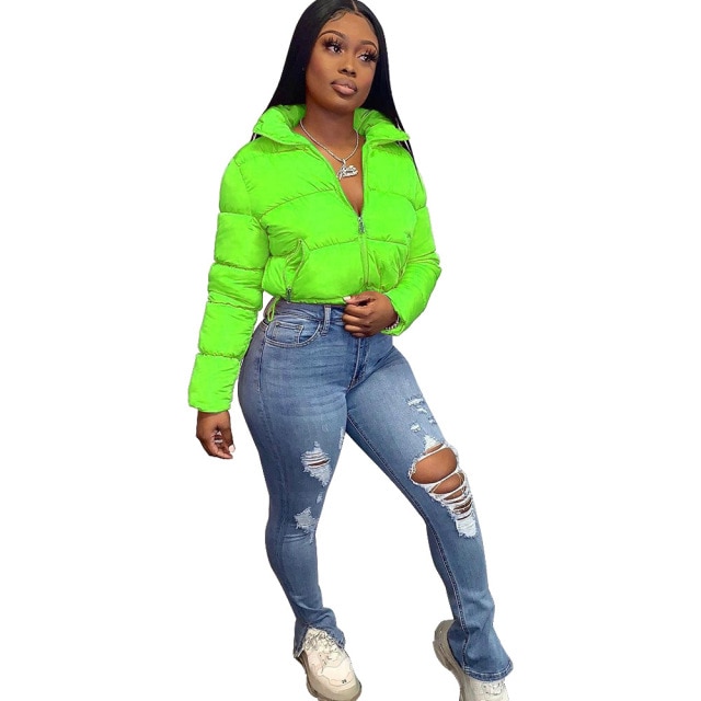 Doudoune vert fluo à manches longues Sexy & Tendance Hiverna