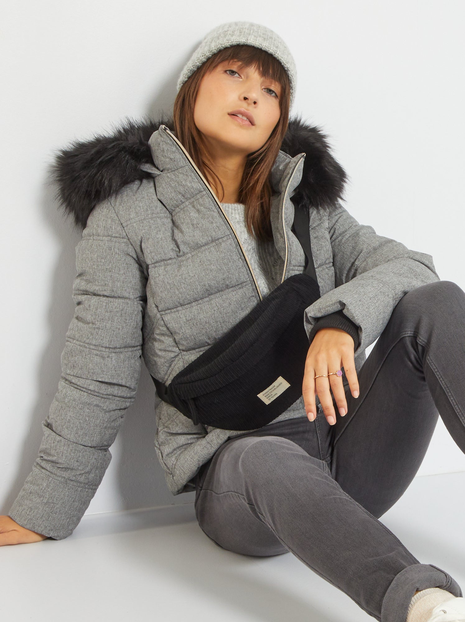 Doudoune matelassée avec fausse fourrure amovible Gris chiné