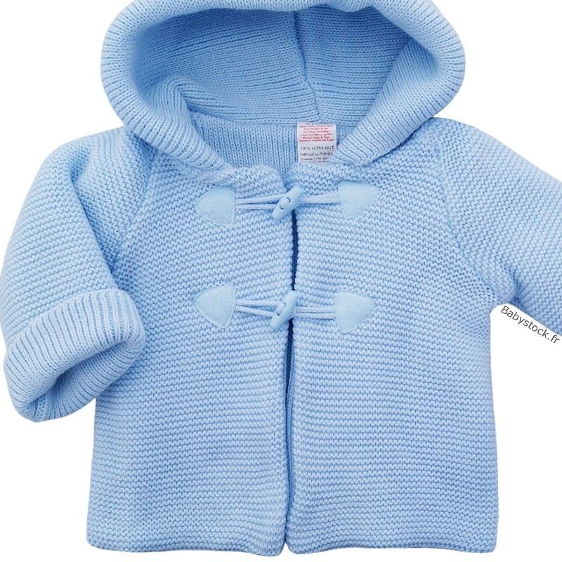 Gilet manteau bébé garçon tricot maille mousse bleu doublé